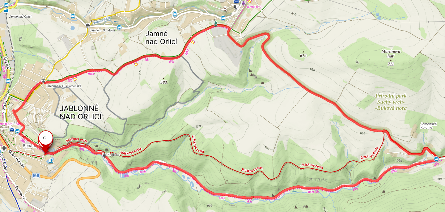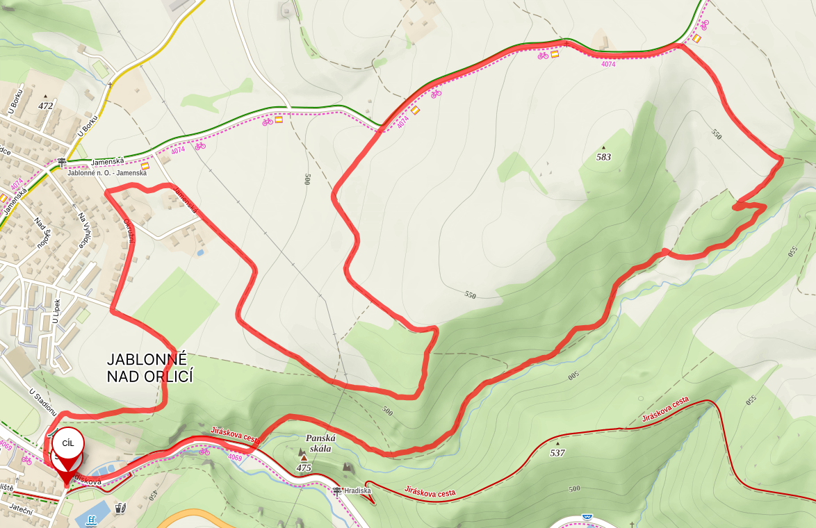 Délka okruhu je 10,5km a okruh se jede dvakrát. Celková délka bude 21 km, převýšení cca 500 m. Doporučujeme silniční nebo gravel kolo. Asfalt na trati bude střídat svou kvalitu - od zcela hladkého, přes hrubší až po úseky (zejména mezi Orličkami a Jamným), kde je třeba “číst trať”. Na těchto úsecích budou díry označeny barevným sprejem. Před prvním závodníkem pojede auto s majákem, za posledním závodníkem taktéž auto zavírající trať. Jedeme za plně uzavřeného silničního provozu. Jízda v háku povolena.